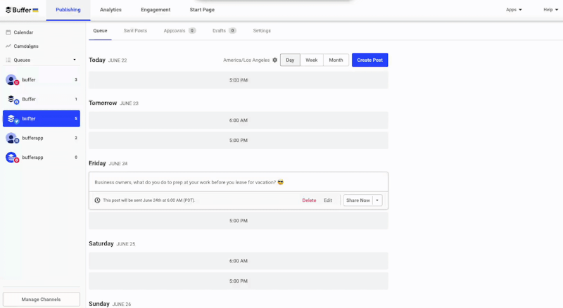 Don’t forget to use handy tools like Buffer to schedule, cross post, and customize your content, so they go live at the best times for each platform.