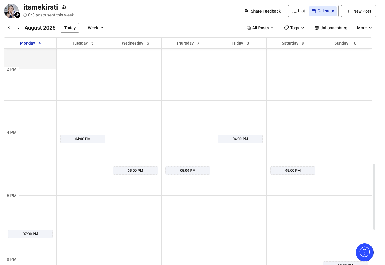 My posting goal is three times per week, but I have slots set up for every day to give me flexibility.