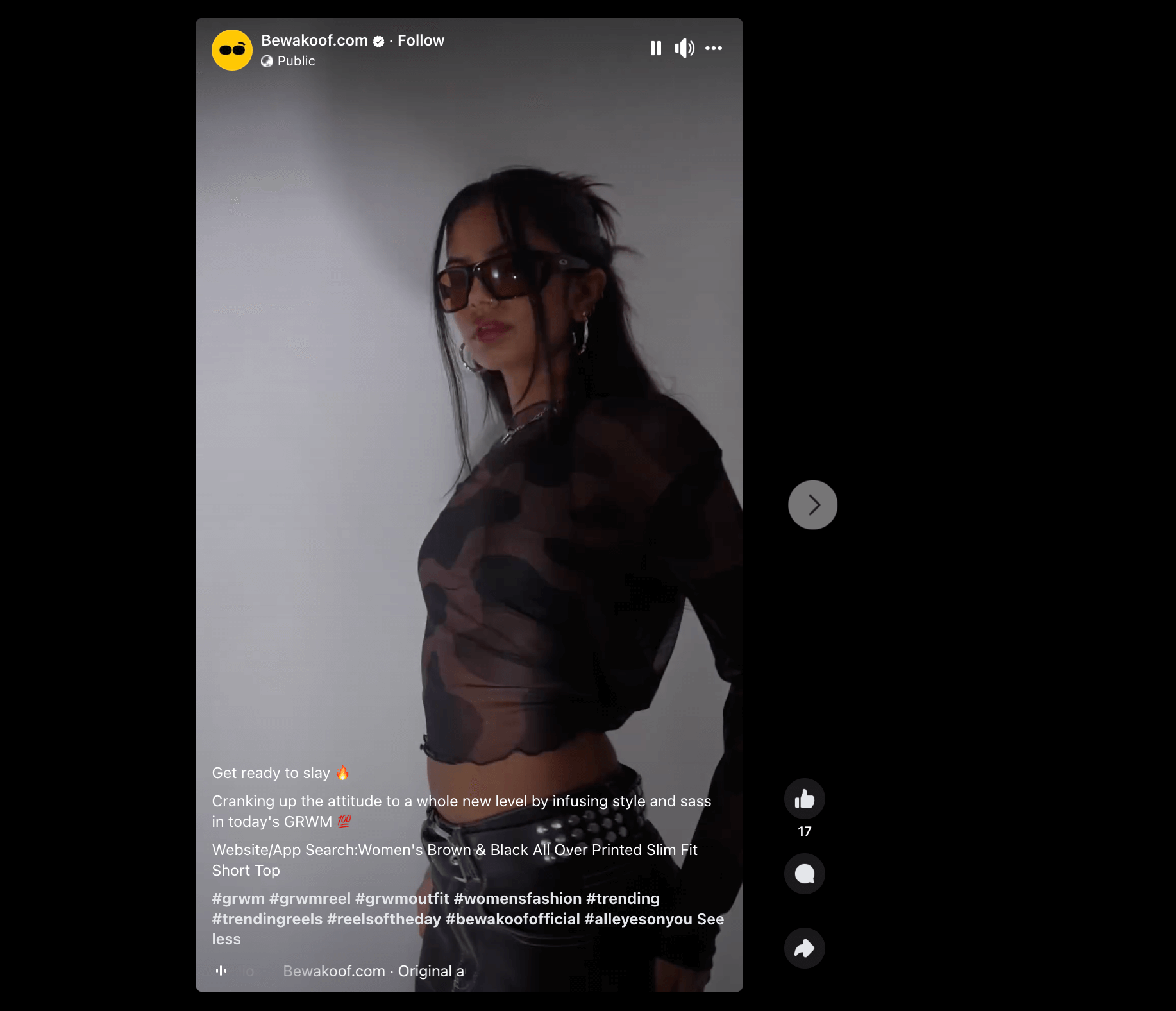 Clothing brand, Bewakoof, is a good example of creating top-notch Facebook Reels. They tap into trends (Get-ready-with-me), tailor them to their brand’s visuals/voice, and add a detailed caption without the link (Facebook posts with links get the least engagement).