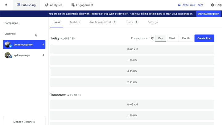 If, like most people, you don't have time to sit at your desk and wait for the perfect time of day to publish a tweet, consider using a post scheduler so you can create your tweets ahead of time and schedule them to go live when they'll reach the most people.