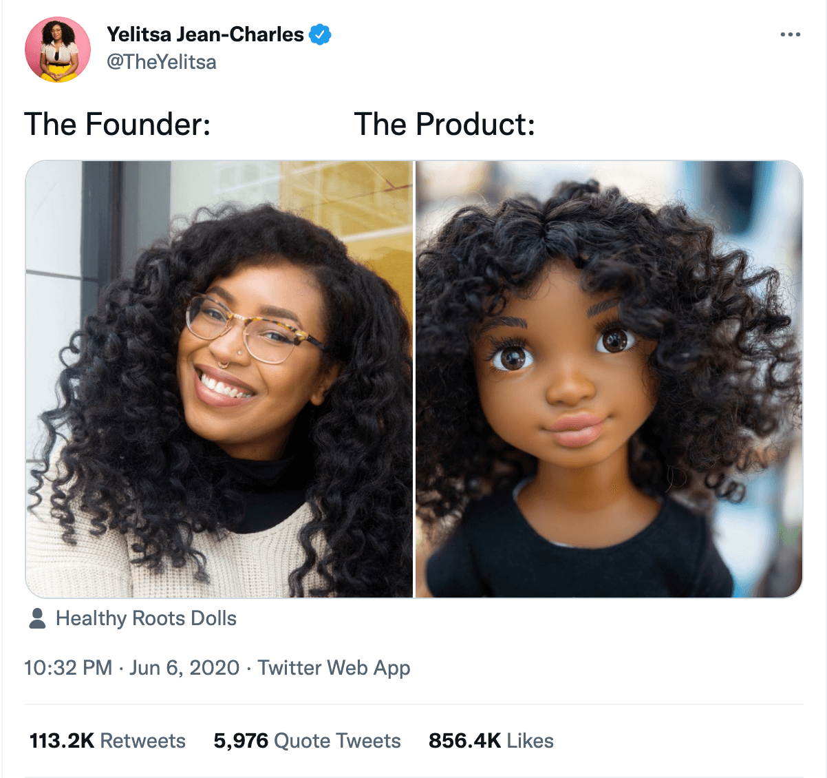 We're longtime Twitter fans, it's been an amazing tool for building personal brands and helping small businesses grow. Yelitsa Jean-Charlies is a good example of both, she's founder of Healthy Roots Dolls and she used Twitter to grow her brand and bring “the beauty of our diversity to the toy aisle.”