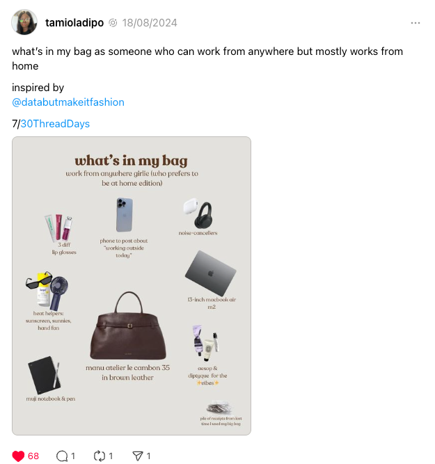 Social media tools like Canva and Instagram's Layout make editing together a selection of images a breeze. Tell a visual story by juxtaposing several elements in one image, the way Buffer content writer Tami Oladipo did in this clever Threads post.