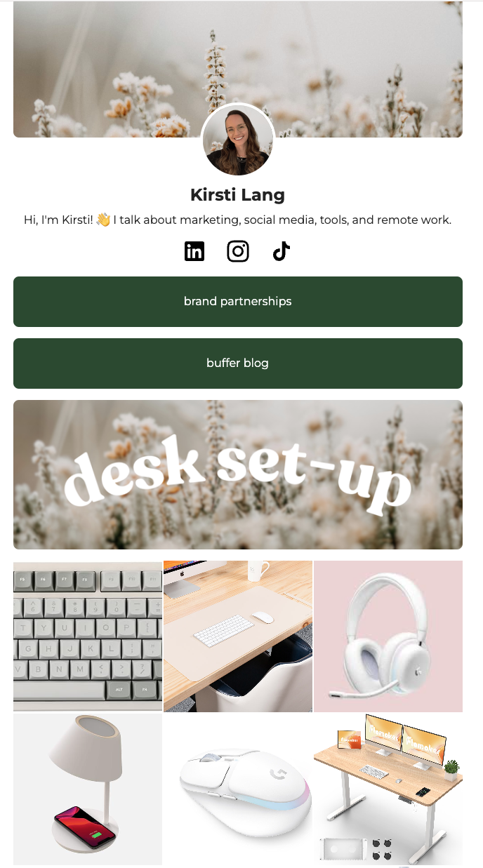 Of course, if the site you want to send them to is not front and center, you’ll need a link-in-bio tool you can easily curate to show the most important information first. Buffer’s Start Page is a great (free!) alternative.
