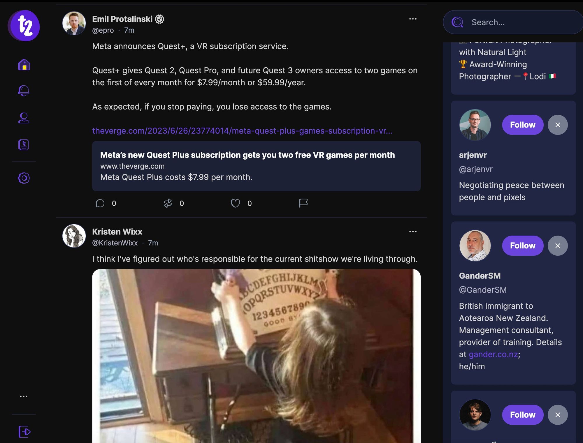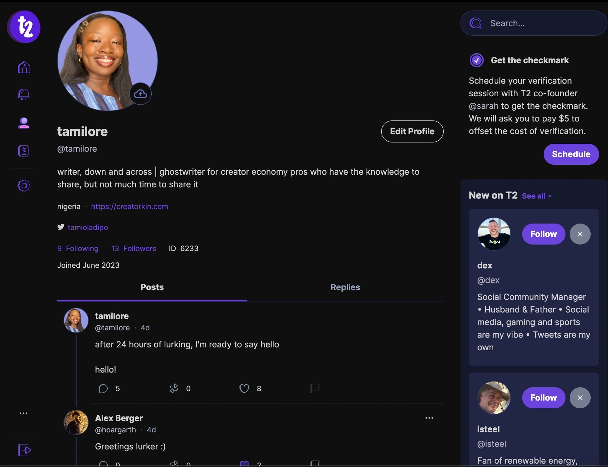 T2 Social, founded by Gabor Cselle and Sarah Oh, is the closest platform to Twitter in terms of its user interface, the style of posts, and the general vibe on the platform. This can probably be attributed to Sarah Oh’s experience as Human Rights Advisor at Twitter.