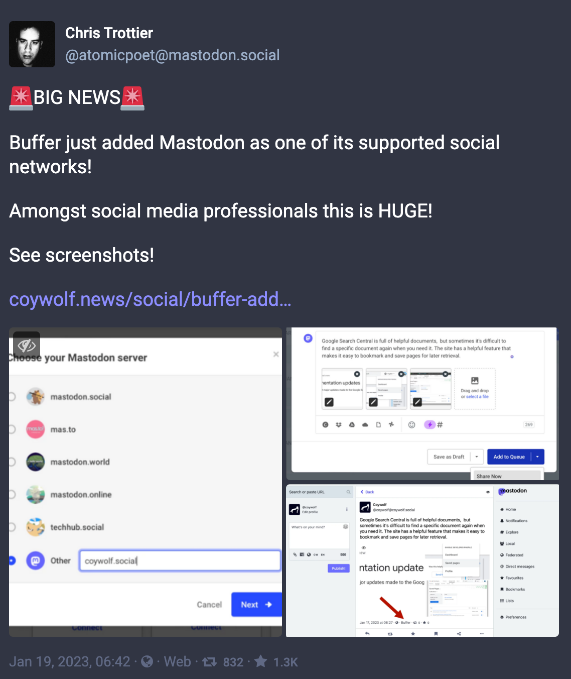 And here are a few tips for creating a Mastodon post using Buffer.