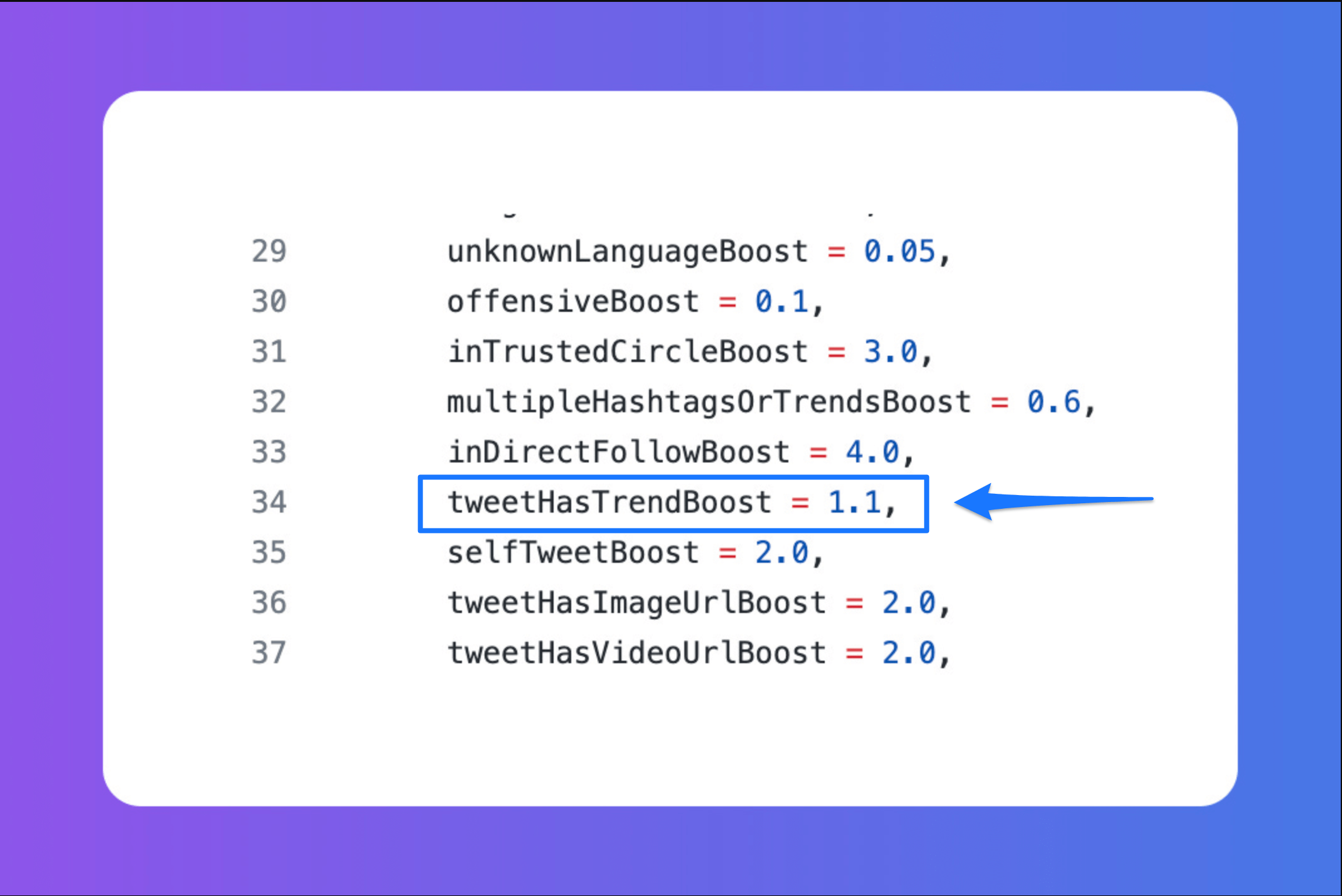 This tip is an easy one and true for every social media platform: Hopping on industry-relevant trends will boost your reach. Tweets on a trending topic receive a 1.1x boost compared to trend-free tweets, according to X’s open-source code.