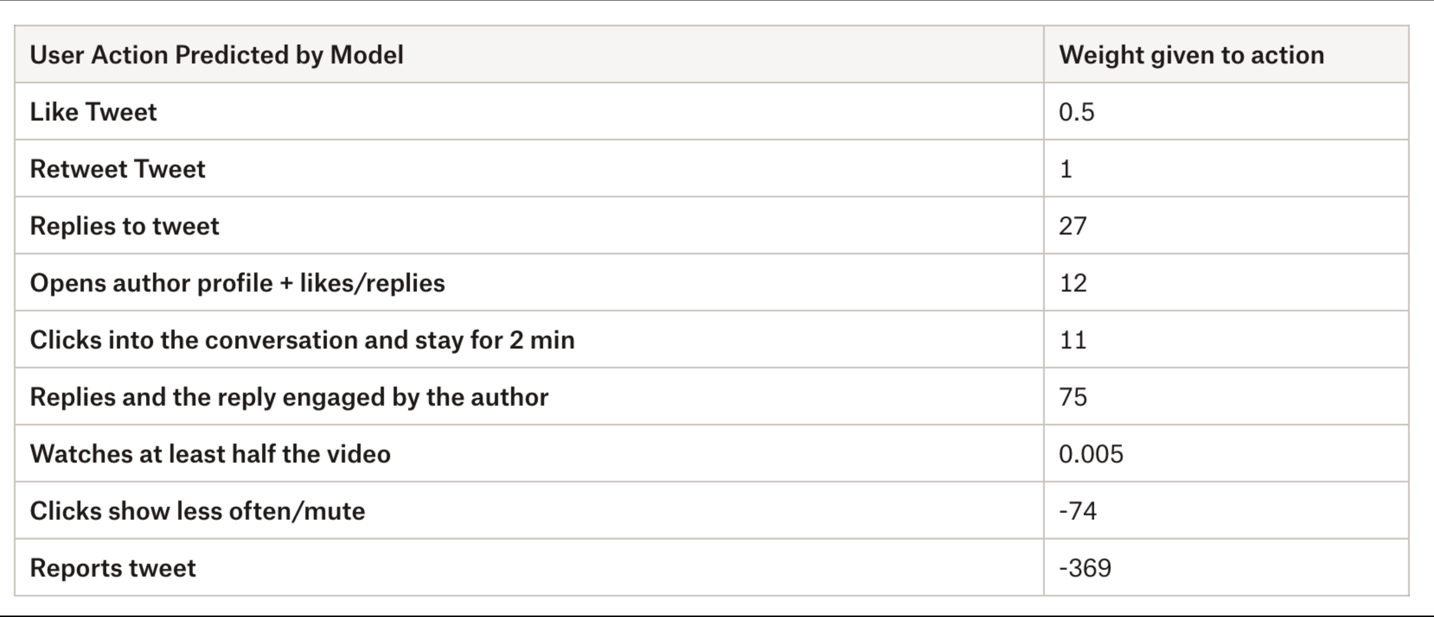 A user clicking on your tweet staying there for >2 min is weighted 22x more than them just liking your tweet