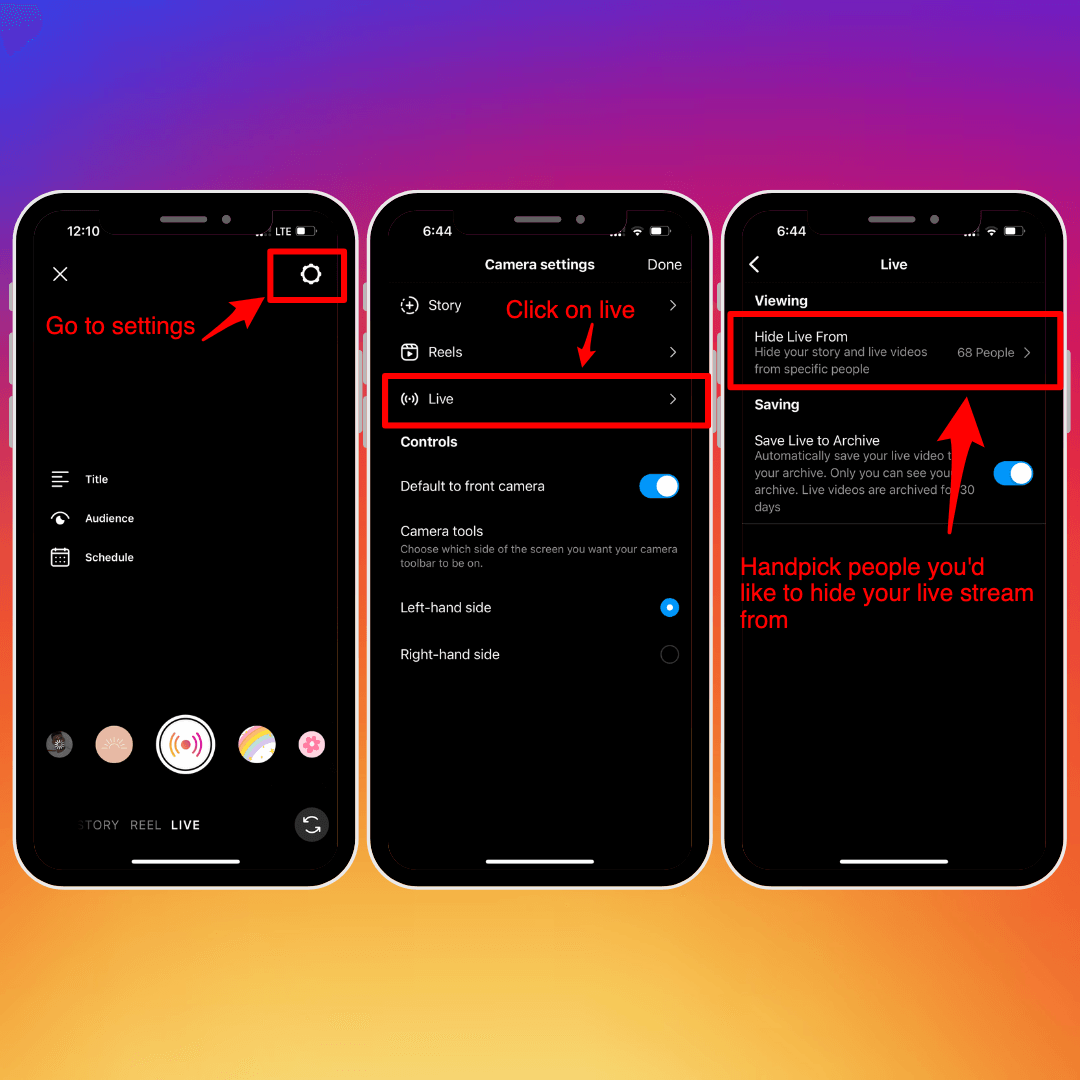 - Handpick people you’d like to hide your live stream from by going into your settings