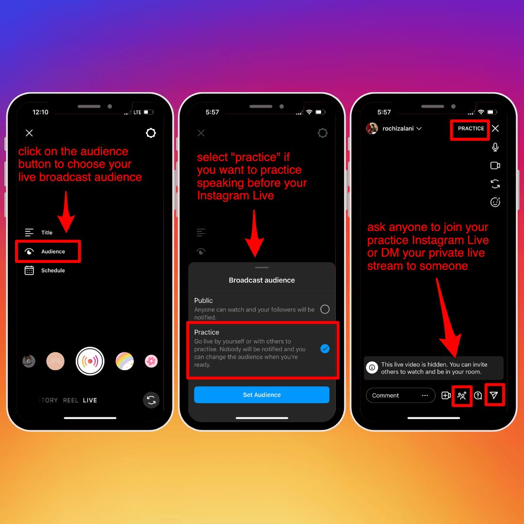 - Practice is when only you can see your live and no one in your audience will be notified.